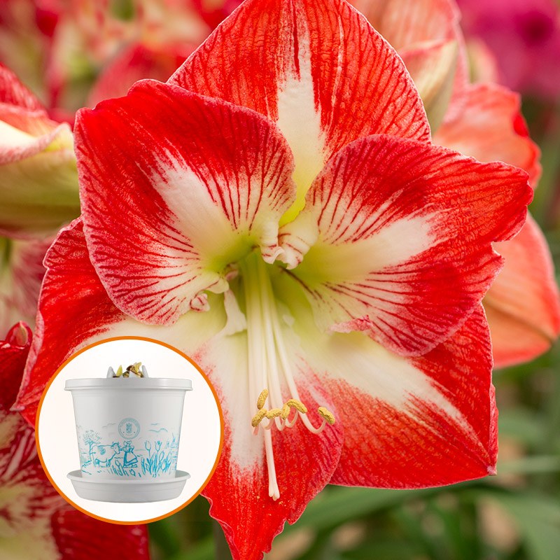 Amaryllis Minerva im Zuchttopf in Geschenkbox