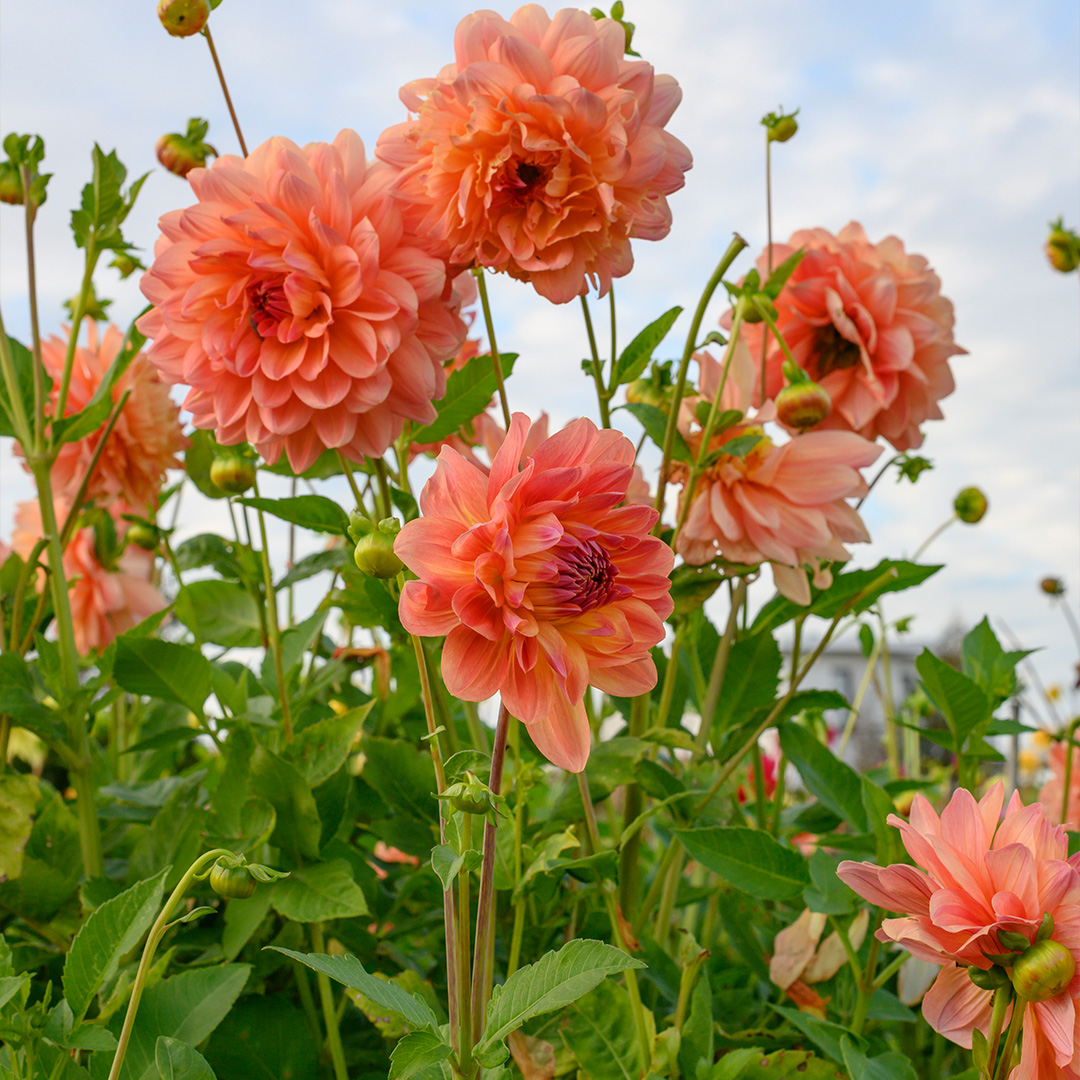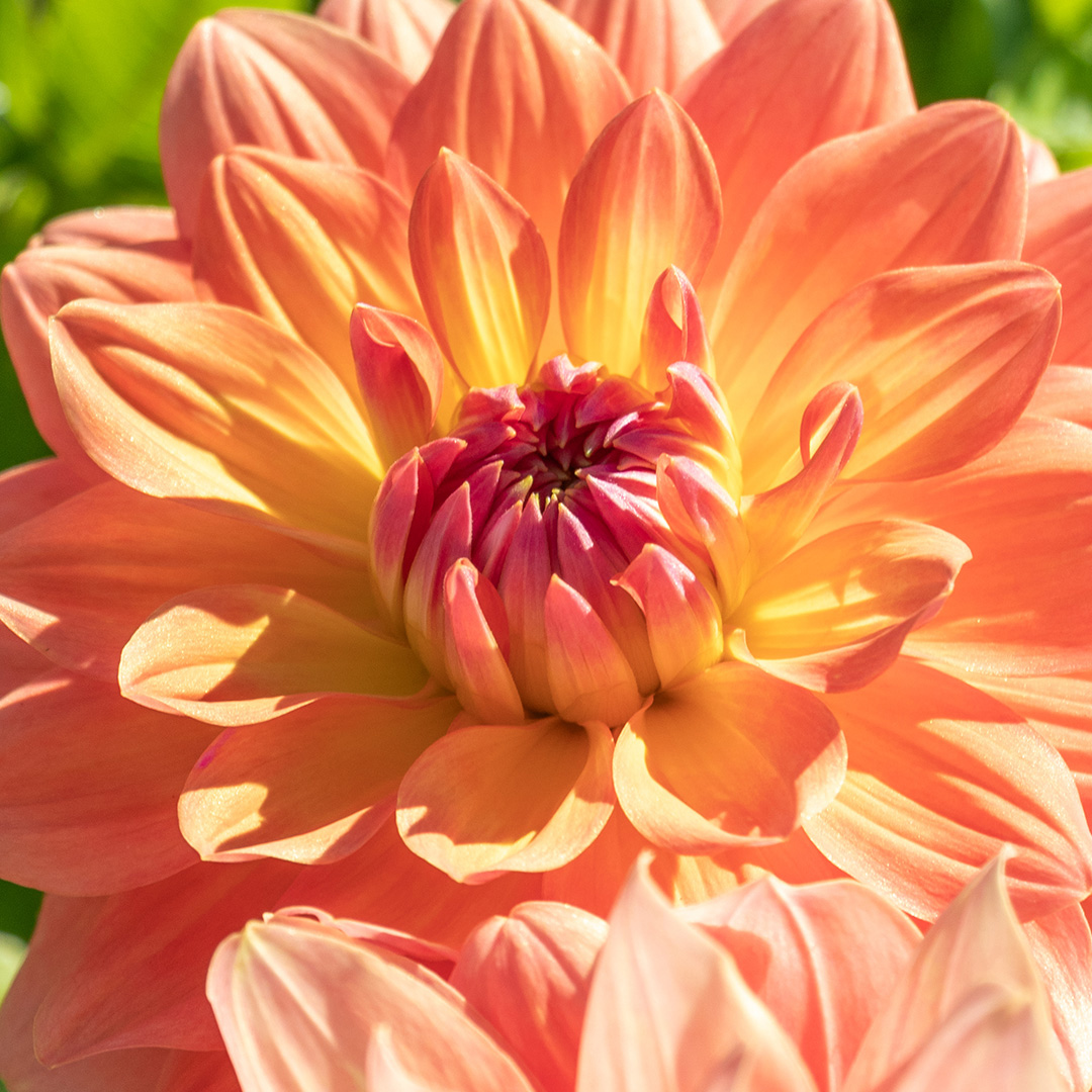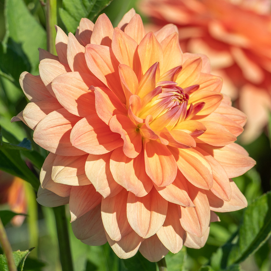 Die Dahlie Ace Summer Sunset ist eine sogenannte 'Dinner Plate' Dahlie, die vom Hochsommer bis zum Herbst viele, sehr große Blüten (Blütendurchmesser 200 mm) hervorbringt. Eine schöne Schmuckdahlie mit großen Blüten in Aprikosenrosa, die an der Innenseite mit cremegelb abgesetzt sind. Die Kombination dieser beiden Farben verleiht Ihrem Garten einen mysteriösen und exotischen Effekt, welcher an einen Sonnenuntergang denken lässt. Zudem kann diese Dahlie wunderbar mit anderen Dahliensorten kombiniert werden. Dahlien stammen aus Mexiko und mögen den Sommer, sind aber sehr frostempfindlich. Pflanzen Sie sie nach dem letzten Frost und holen Sie die Knollen vor dem ersten Frost aus dem Boden, damit sie Jahr für Jahr neu genießen können.