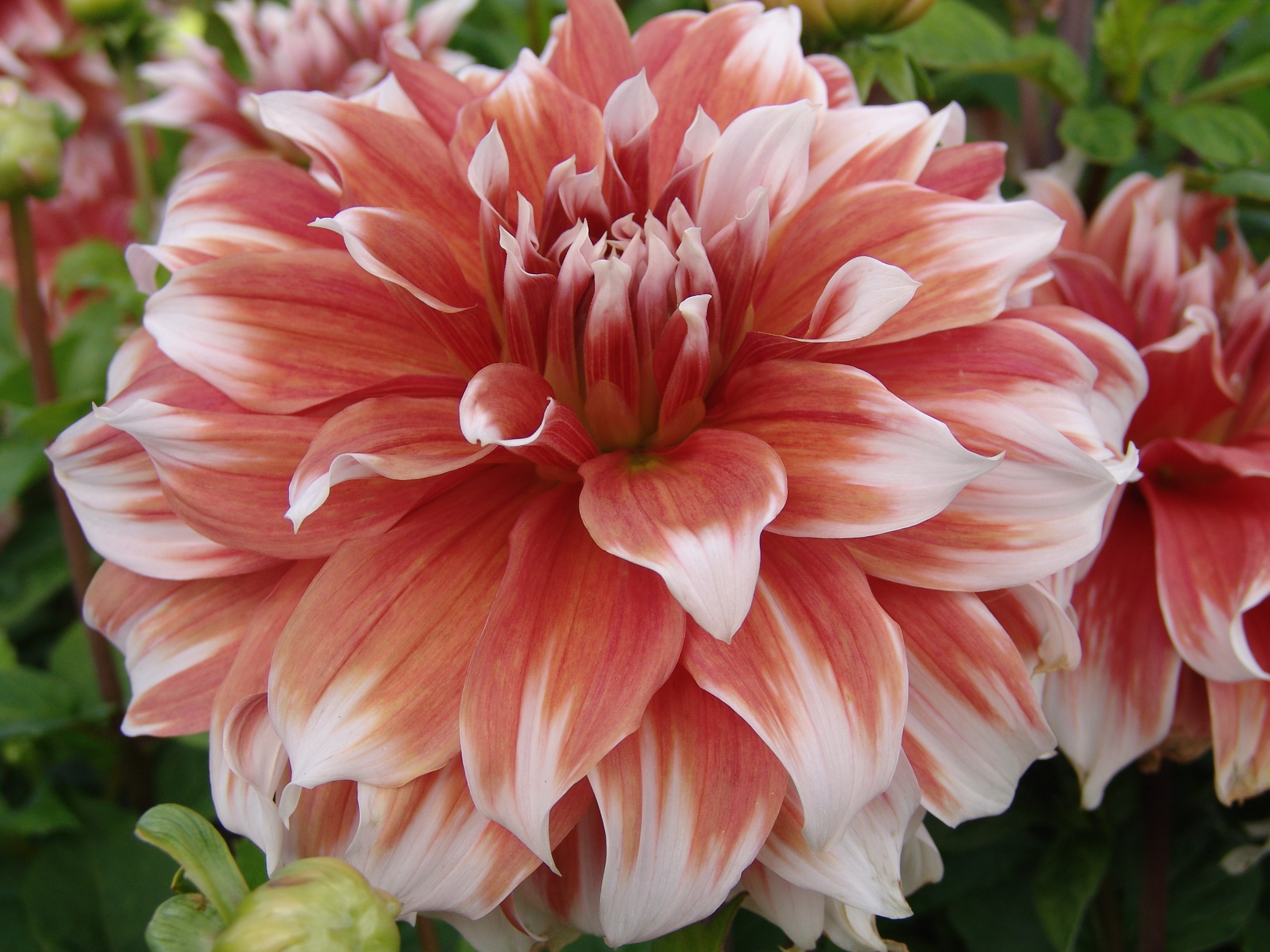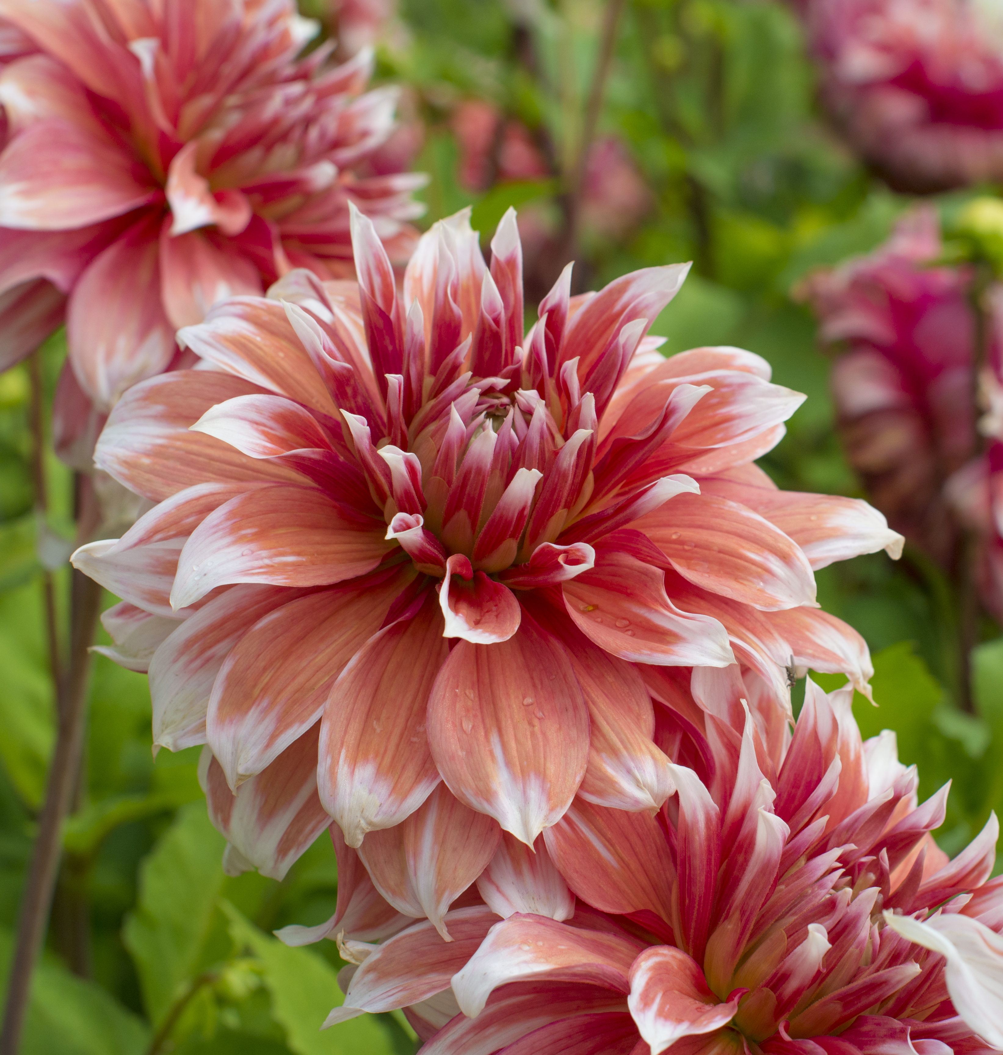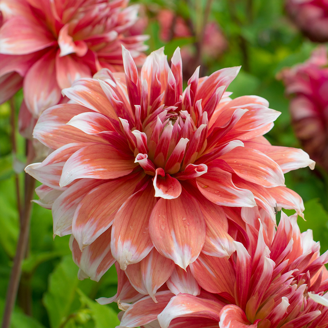 Eine reizvolle Dinnerplate Dahlia ist diese Frost Nip mit ihren schönen orangefarbenen Blütenblättern mit weißem Rand. Auch ihre atemberaubend perfekte Form macht diese Dahlie zu einer ganz besonderen Erscheinung. Eine dekorative Blume, die man nicht ignorieren kann und auch nicht sollte, denn alle Dahlien sind auf ihre Weise schön. Die Blüten sind bis zu 20 cm groß - so groß wie ein Essteller - und beeindrucken wirklich.