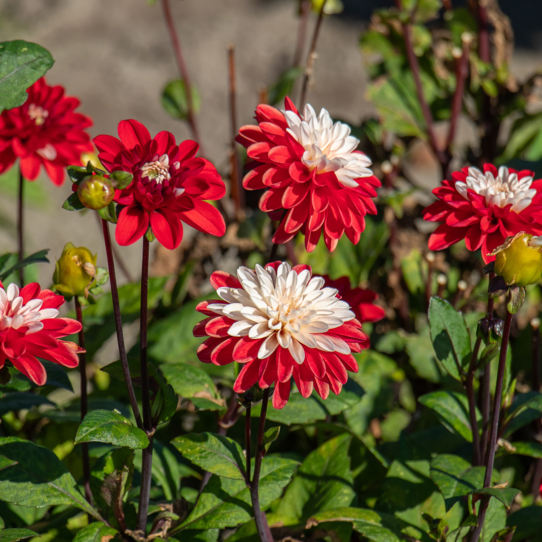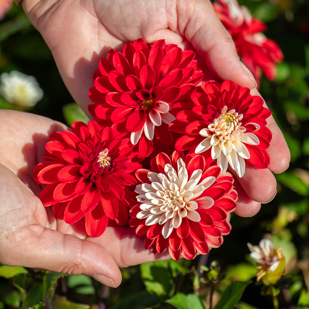 Die Dahlie 'Santa Claus' ist ein spektakulärer Blickfang, der seinem Namen alle Ehre macht. Diese dekorative Dahlie besticht durch ihre großen, gefüllten Blüten in einer verspielten Kombination aus Rot und Weiß. Jedes Blütenblatt ist einzigartig gestreift oder gefleckt, sodass keine Blume der anderen gleicht. Perfekt für alle, die ihrem Garten etwas Besonderes verleihen möchten!