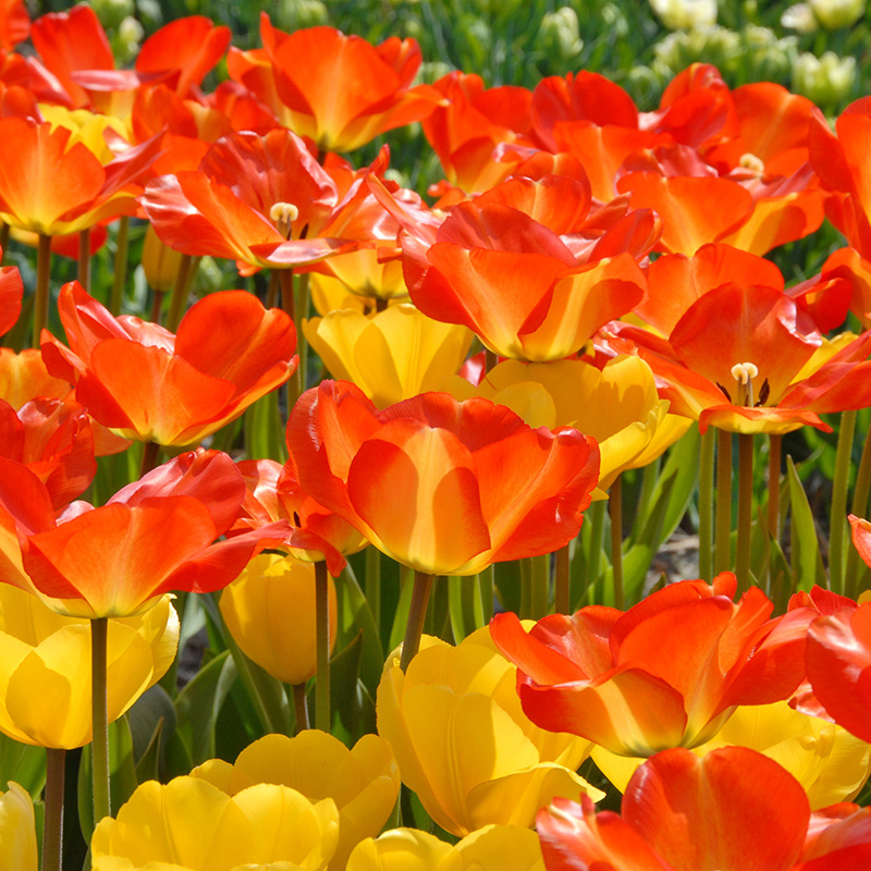 Die erstaunliche Tulpe American Dream zeigt während ihrer Blüte einen wunderschönen Farbwechsel. Wenn sich ihre Blüte öffnet sehen Sie ein zartes Gelb, was sich später, wenn die Tulpe in voller Blüte steht, in ein feuerrot verwandelt. Diese Super Tulpe ist kein Traum, sondern Realität, Sie können sie einfach in Ihren Garten pflanzen. Diese Darwin Hybride zeigt sich in den Farben von Rot mit Orange Gelb und kommt in Gruppen gepflanzt, sehr gut zu ihrem Recht. Sie ist eine elegante Schnittblume in einer schönen Vase auf Ihrem Tisch. Bevorzugt wird ein Standort in der vollen Sonne oder Plätze im Halbschatten. Bei einer Wuchshöhe von etwa 50 bis 60 cm ist sie einfach nicht zu übersehen. Im April können wir diese sinnliche Tulpe überall in unseren Gärten und auf den Tulpenfeldern sehen. Die Tulpe American Dream können Sie lange Zeit in ihrem Garten genießen.
