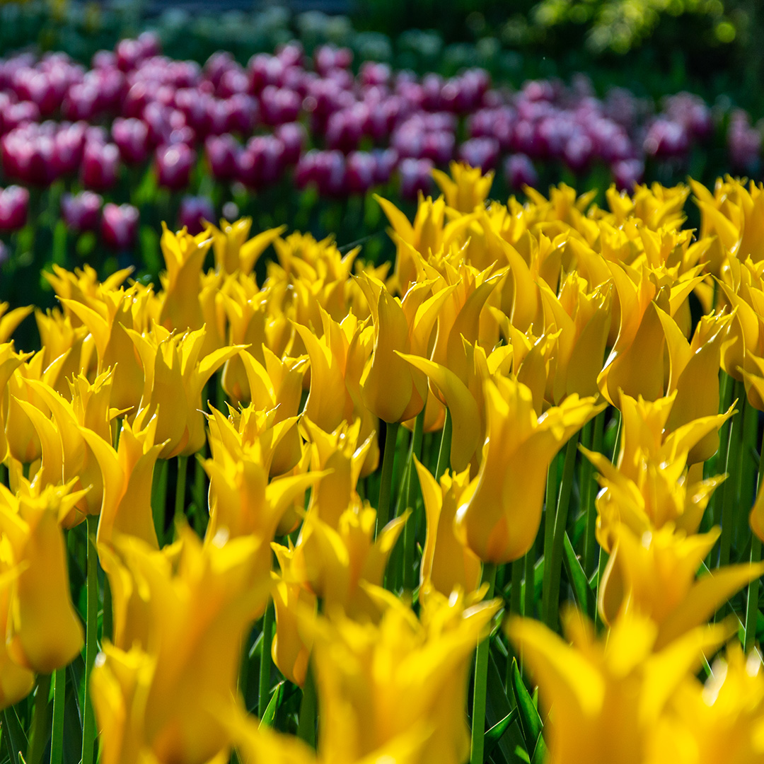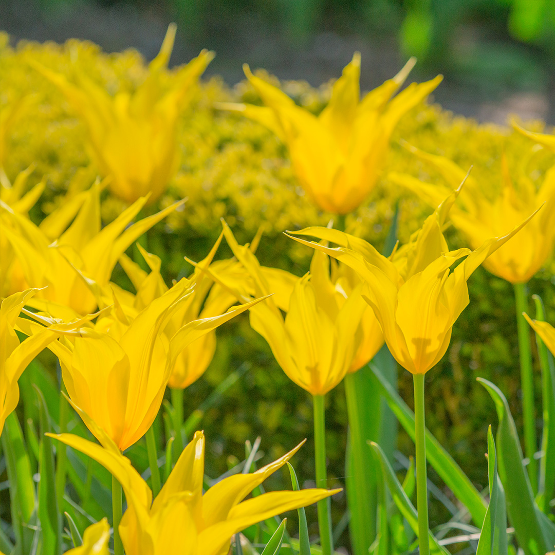 Verleihen Sie Ihrem Frühlingsgarten mit der Tulpe 'Flashback' einen Hauch von Sonnenschein. Diese edle, lilienförmige Tulpe zieht dank ihrer einzigartigen Form und der tiefen, zitronengelben Farbe sofort alle Blicke auf sich. Die Blütenblätter laufen anmutig spitz zu und biegen sich während der Blüte elegant nach außen, wodurch die Blüte fast sternförmig wirkt.