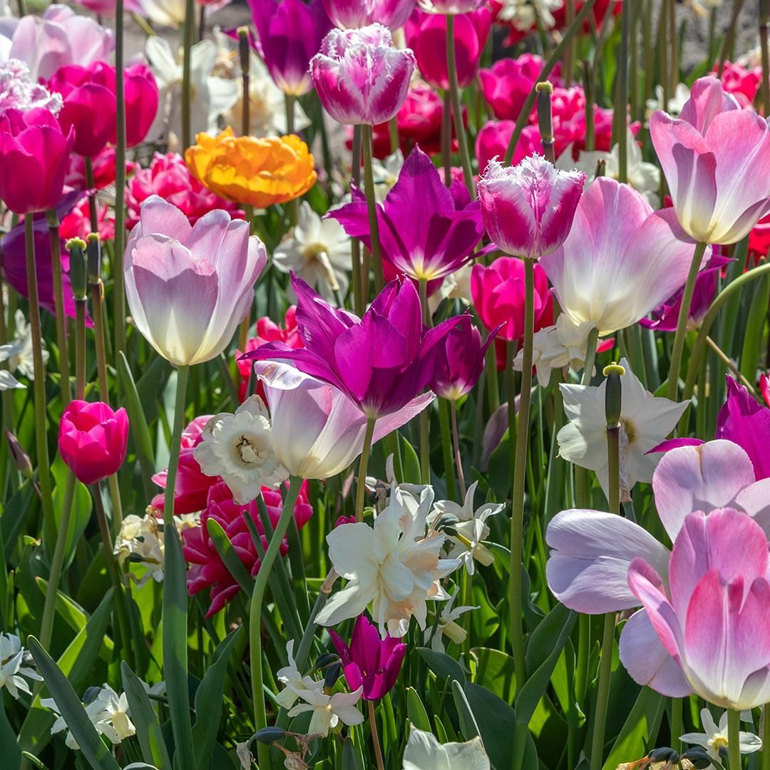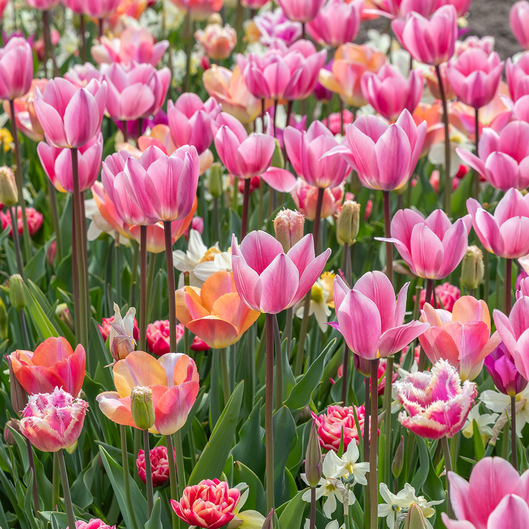 Holen Sie sich mit der Mischung 'Sakura' die besinnliche Schönheit eines erwachenden Frühlingsgartens nach Hause. Diese sorgfältig zusammengestellte Kombination vereint das Beste aus zwei Welten: die würdevolle Eleganz der Tulpe und die fröhliche, verspielte Form der Narzisse. Das Ergebnis ist ein harmonisches Blütenmeer aus zartem Rosa, Creme, Flieder und Lachsrosa. Die Mischung reicht von zartem Rosa über Flieder bis hin zu Lachsrosa. Genau wie bei echten Kirschblüten verändern sich die Farben subtil, während die Blüten reifen, und erzeugen so einen lebendigen Effekt. Die ausgewählten Tulpen und Narzissen dieser Mischung sind so aufeinander abgestimmt, dass sie gleichzeitig blühen. Keine kahlen Stellen, sondern ein üppiges und volles Blumenbeet. Die dichten Kelche der Tulpen bilden einen wunderschönen Kontrast zu den zarten Kronen der Narzissen. Dies verleiht dem Beet Tiefe und ein luxuriöses Aussehen. Möchten Sie Ihren Garten in ein romantisches Paradies verwandeln? Die 'Sakura'-Mischung ist eine wunderschöne Kombination für alle, die einen sanften, ästhetischen Frühlingsgarten lieben.